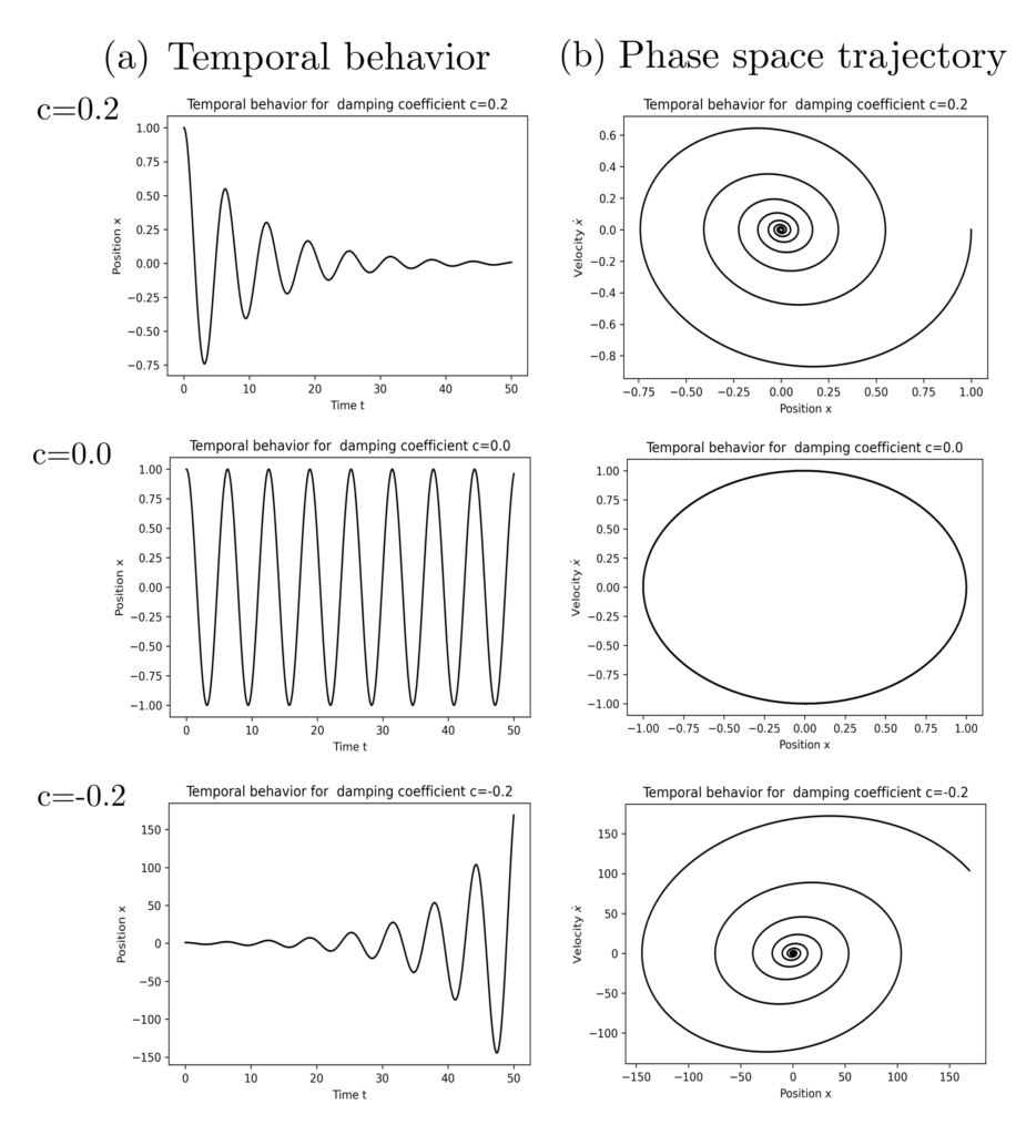 The qualitative differences in system behavior can be explained and predicted directly. The differential equation for the damped oscillator can also be written as